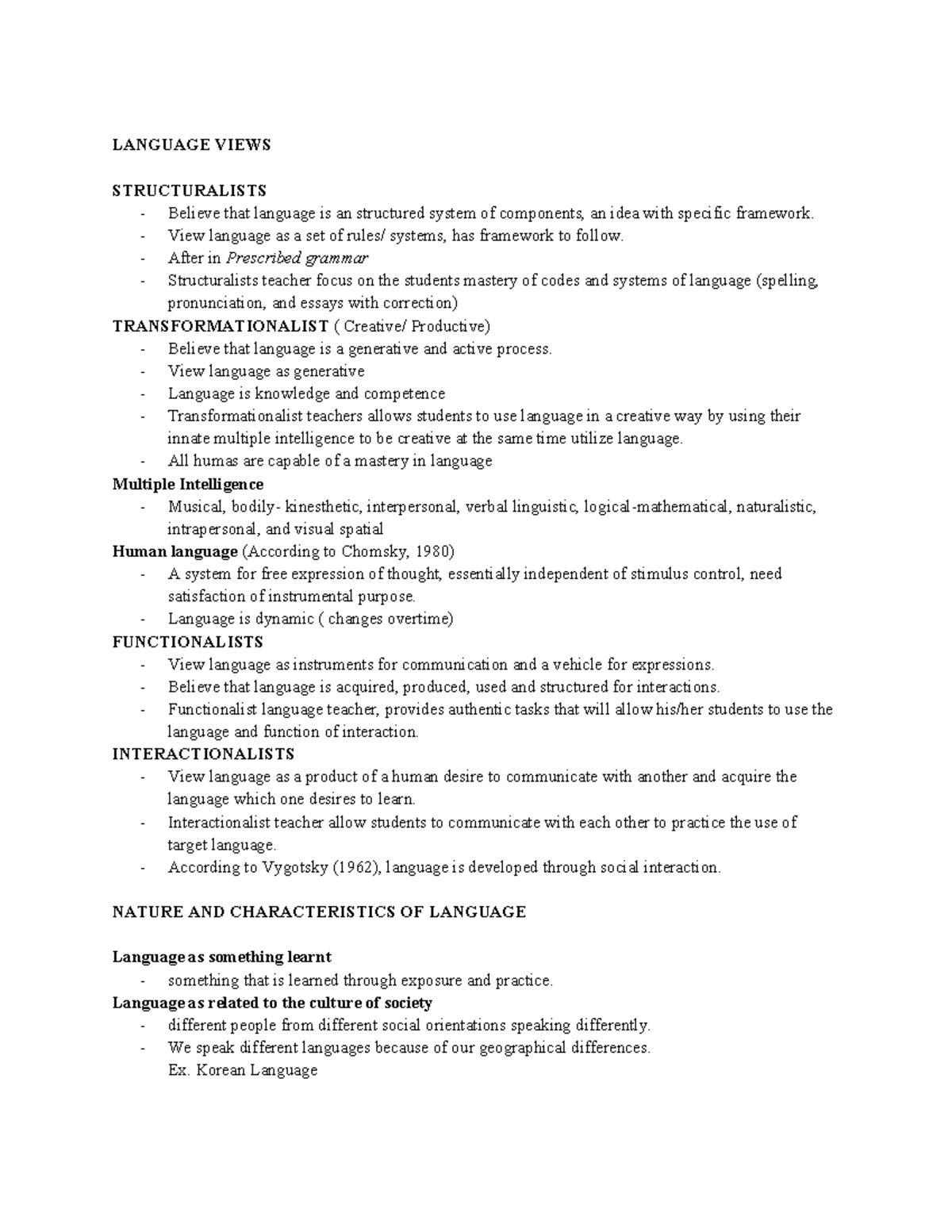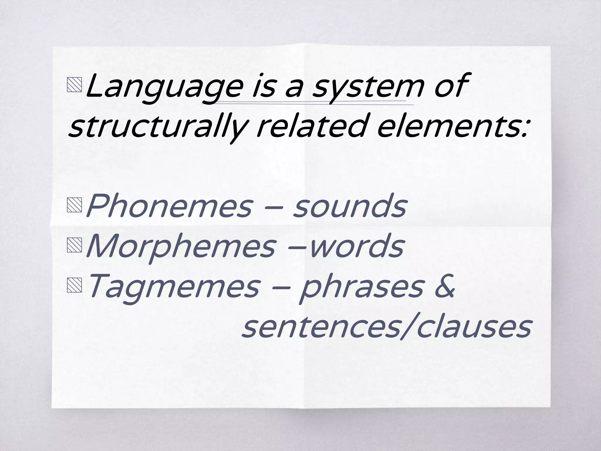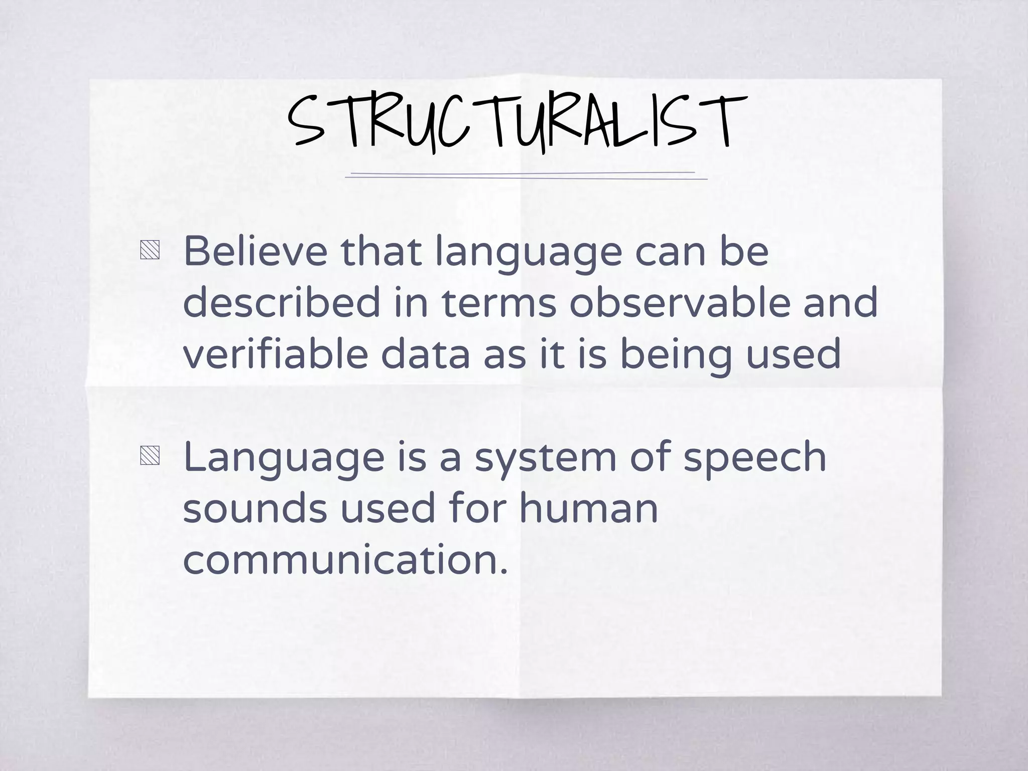 Introduction to Linguistics - LANGUAGE VIEWS STRUCTURALISTS Believe ...