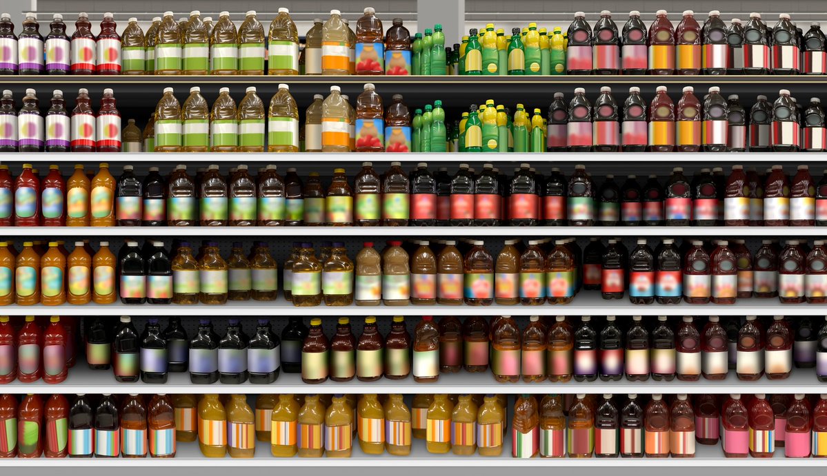 Juice bottles on shelf at supermarket Brandless mockups like this are ...