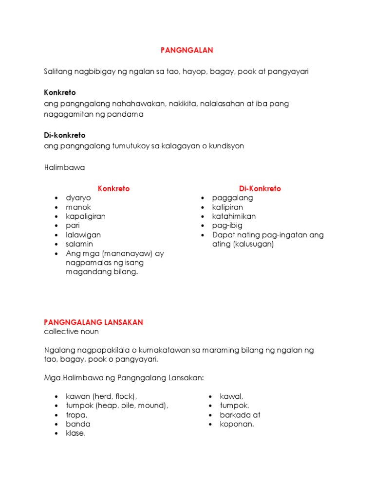 Uri ng Pangngalang Pambalana: Tahas, Basal, Hango, Lansak at ...