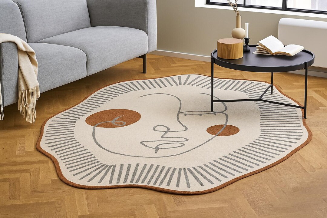 Irregular Tufted Rug Abstract Face Design Modern Cream & Rust Area ...