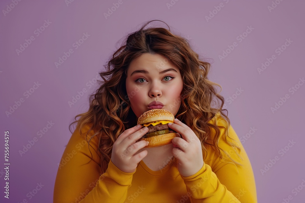 Full length addicted young chubby overweight plus size big fat woman in ...