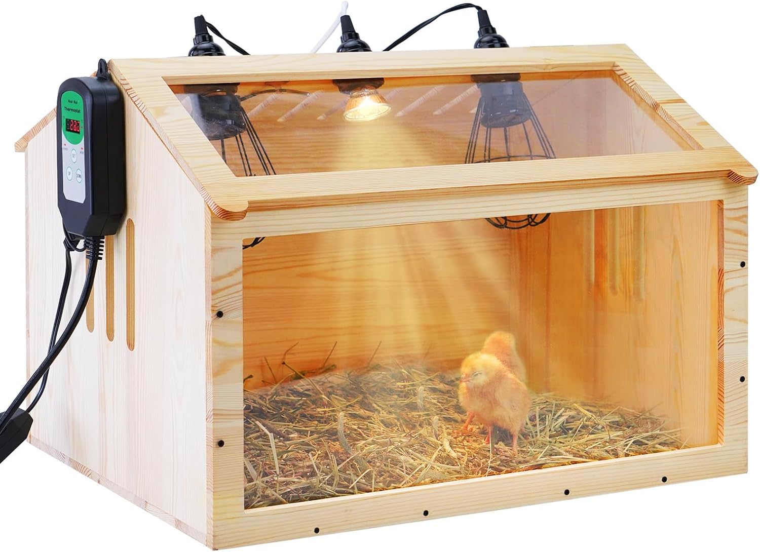 Intelligent Wood Brooder Box for Chick with Thermostat 3 Heater Lamps ...