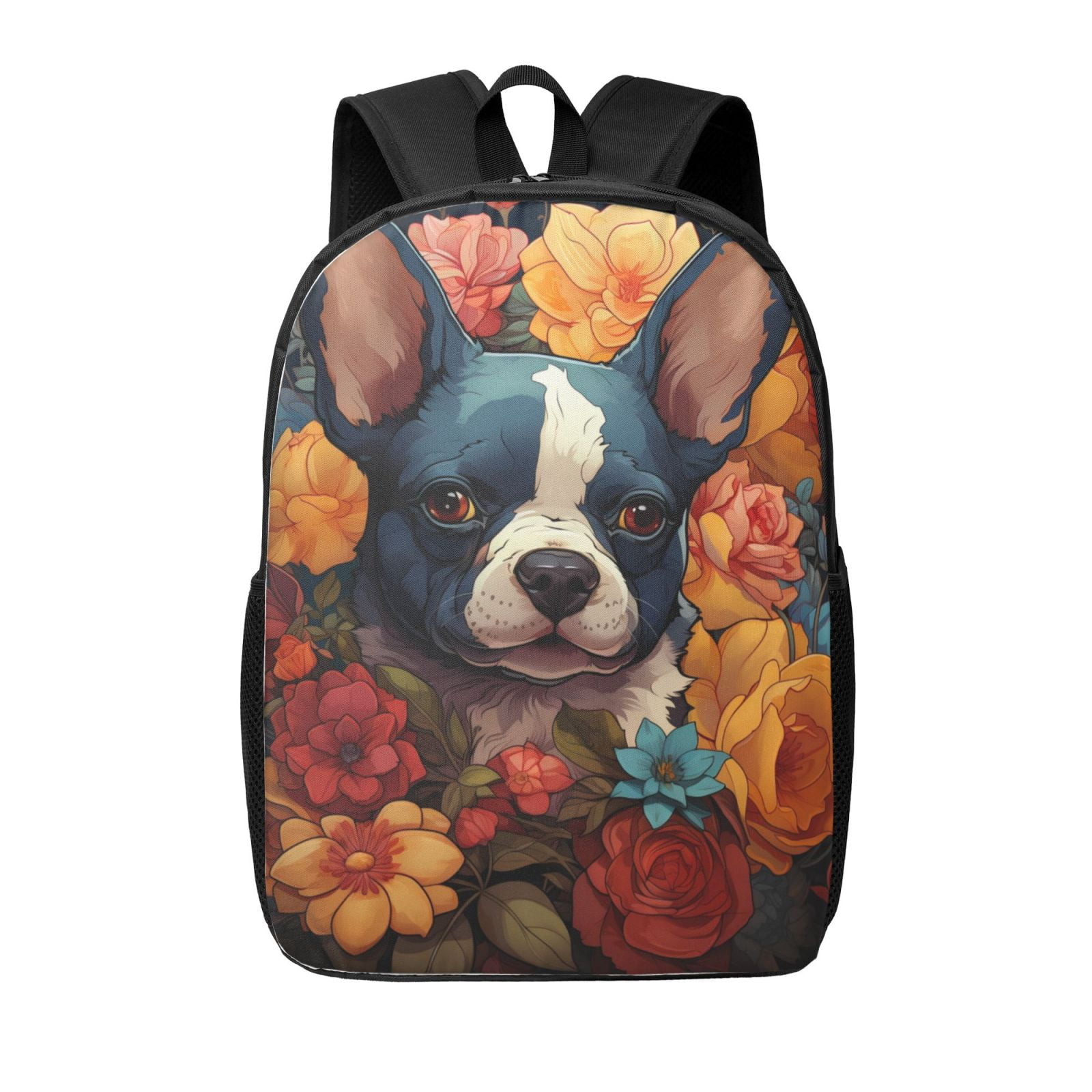 Xecao Cute Colorful Flower French Bulldog print Travel Backpack, Large ...