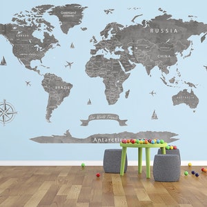Customized Large World Map Wall Decal World Map Wallpaper | Etsy
