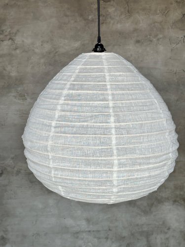 Large Pendant Light in Natural Rattan and Linen in the Shape of a Drop ...