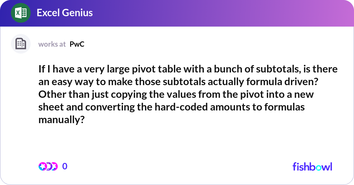 If I have a very large pivot table with a bunch of... | Fishbowl