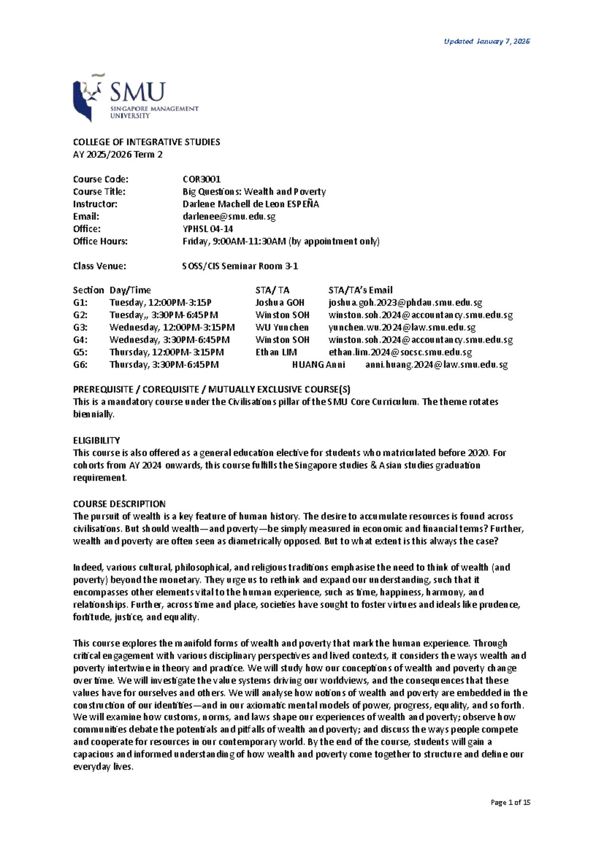 COR3001 Big Questions: Wealth and Poverty Course Overview and Midterm ...
