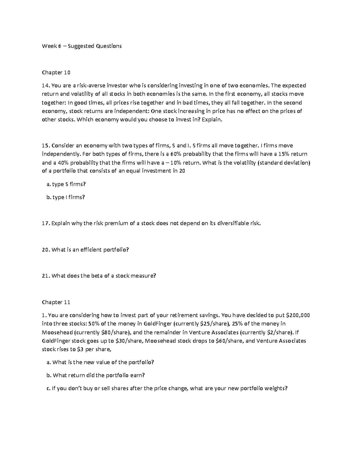 Week 6 - Suggested Questions on Investment Strategies and Risks - Studocu