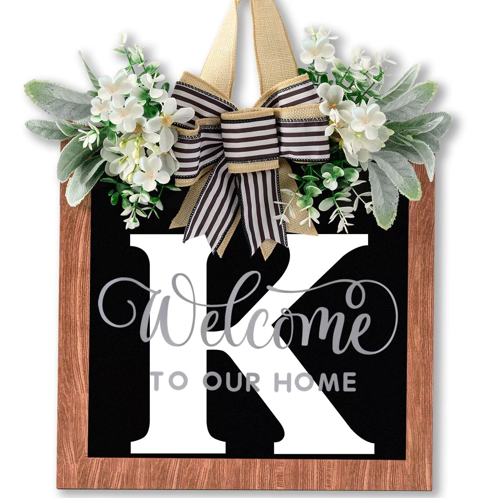 14'' Large Last Name Welcome Door Wreath For Front 26 Letter All Year ...