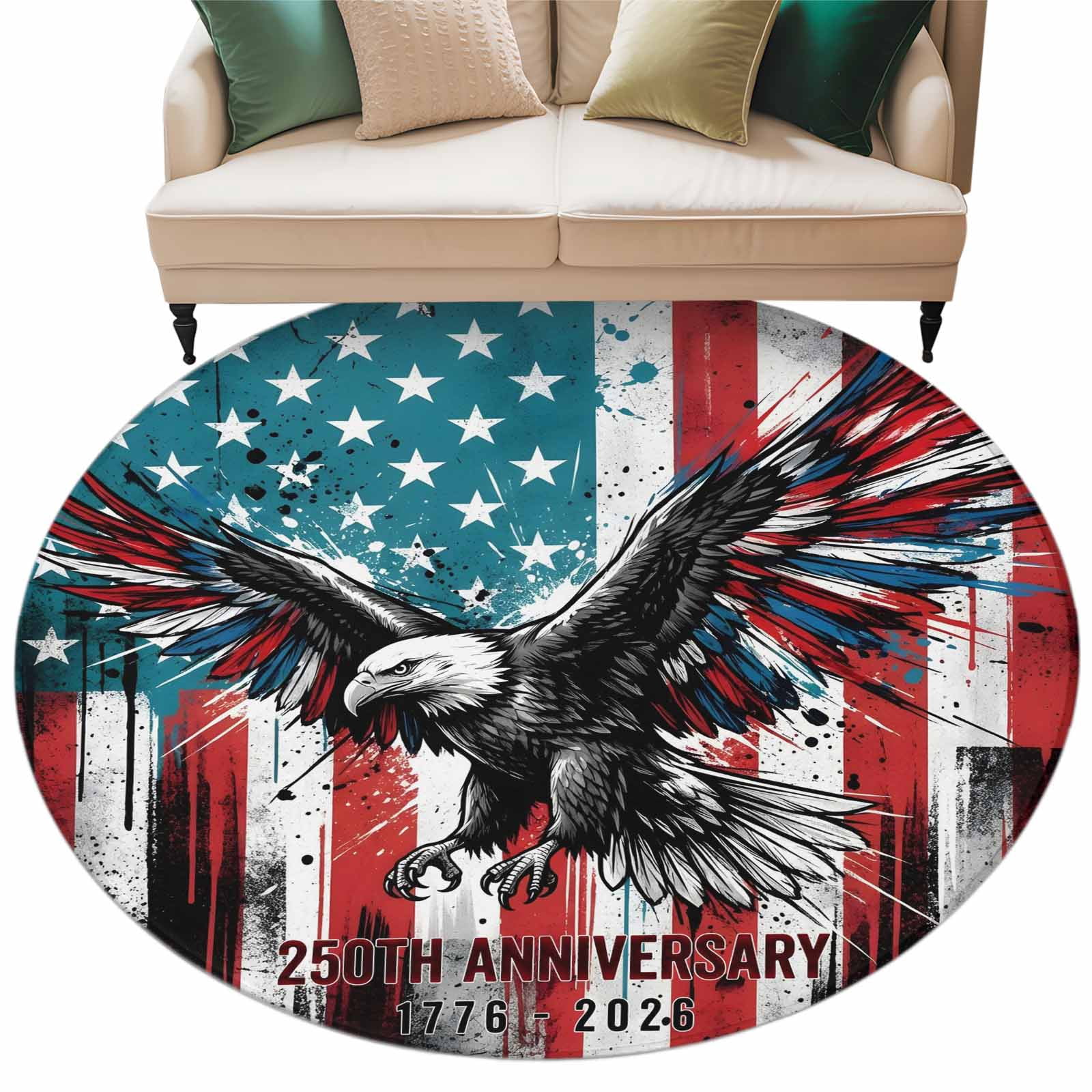 250th Anniversary Flag Round Rug 8ft Washable Circle Rugs Non Slip ...