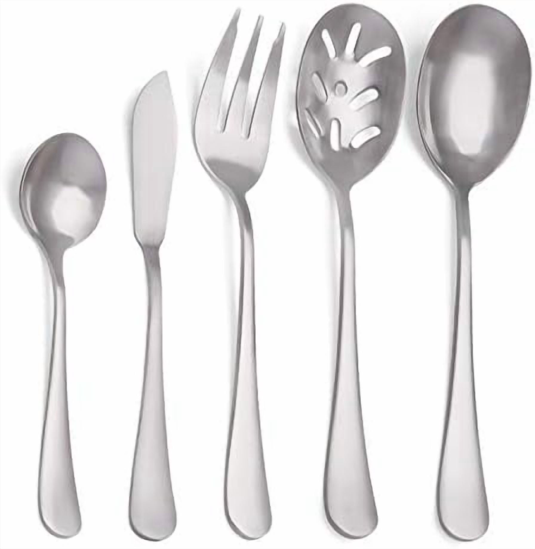 5-Piece 18/0 Stainless Steel Serving Set, Large Hostess Set with Round ...