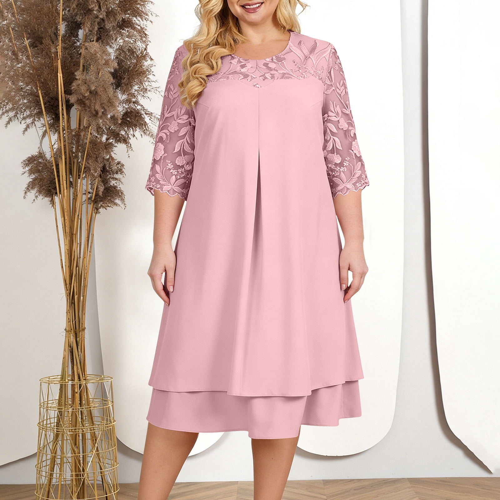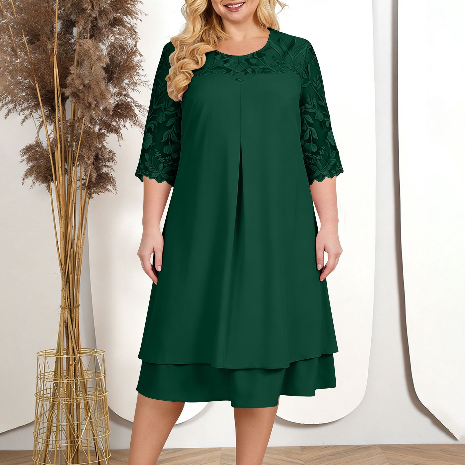 Aimik Women's Large-Size Embroidered Floral Chiffon Patchwork Round ...