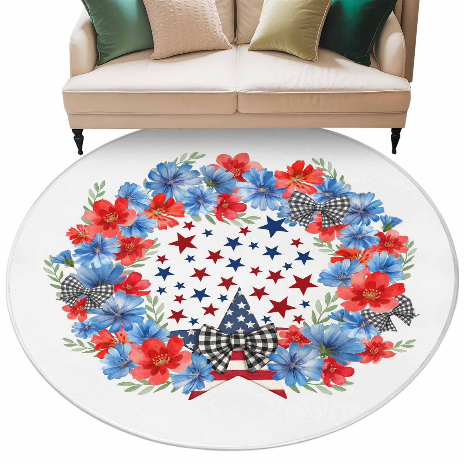 American Flag Round Rug 7ft Washable Circle Rugs Non Slip Blue Red ...