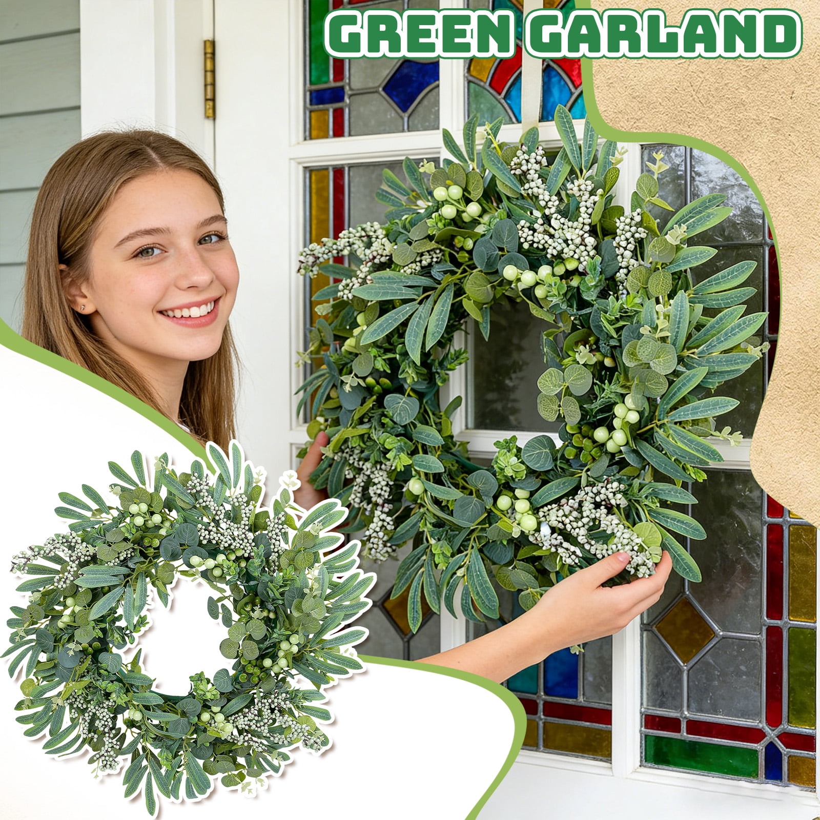Artificial Spring Summer Wreaths for Front Door Green Eucalyptus Leaf ...