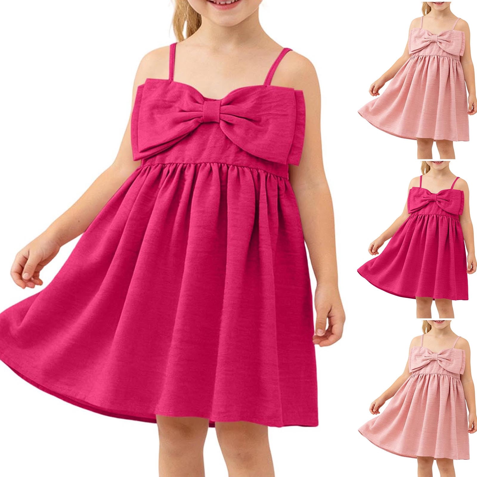 Ashirexll Girls Summer Dress Children Sleeveless Solid Color Round Neck ...