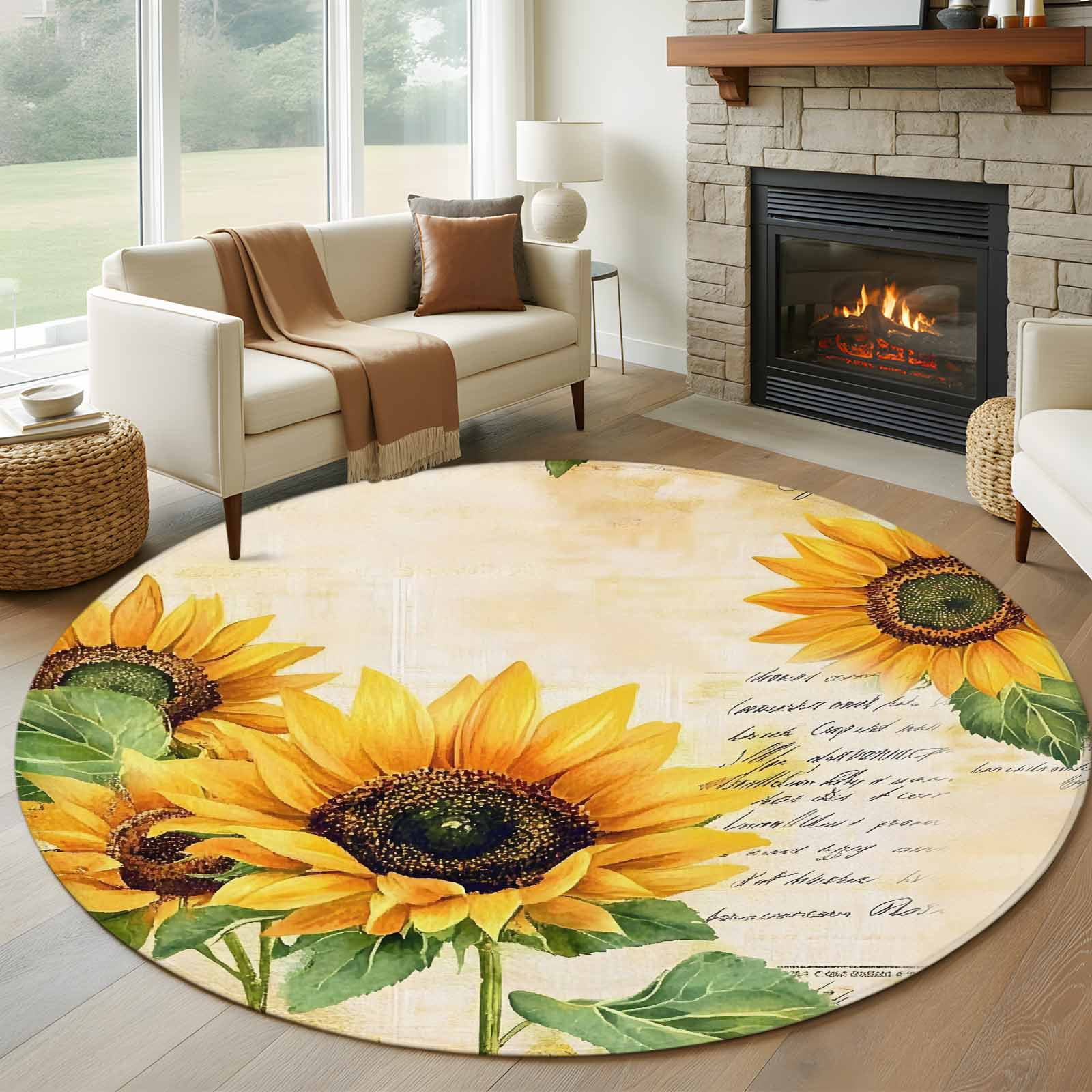 Botanical Sunflowers 8' Round Area Rug, Farmhouse Watercolor Flowers ...