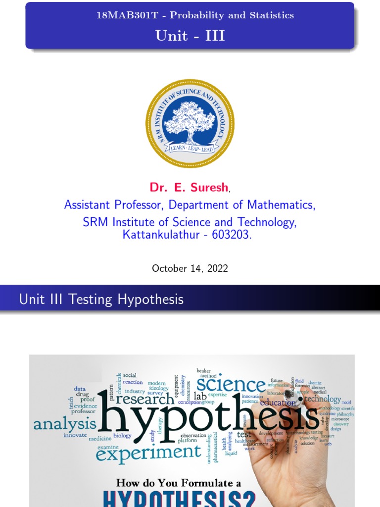 Unit-4 Sampling distribution and testing of hypothesis - Large samples ...