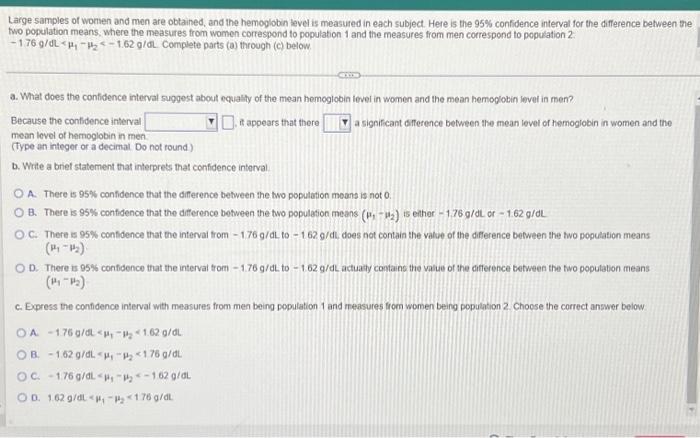Solved Confidence interval using sample means, large samples | Chegg.com