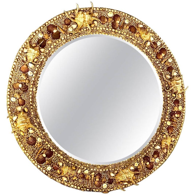 Round Mirror Covered with Beautiful Sea Shells For Sale at 1stDibs