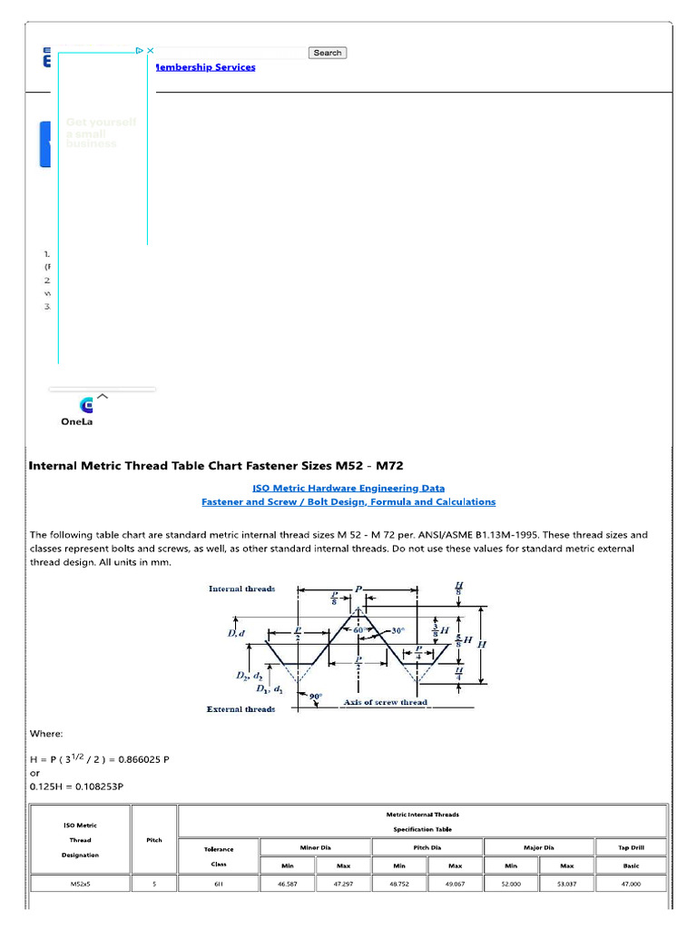 Thread Chart (Metric) Major And Minor Diameters, 40% OFF