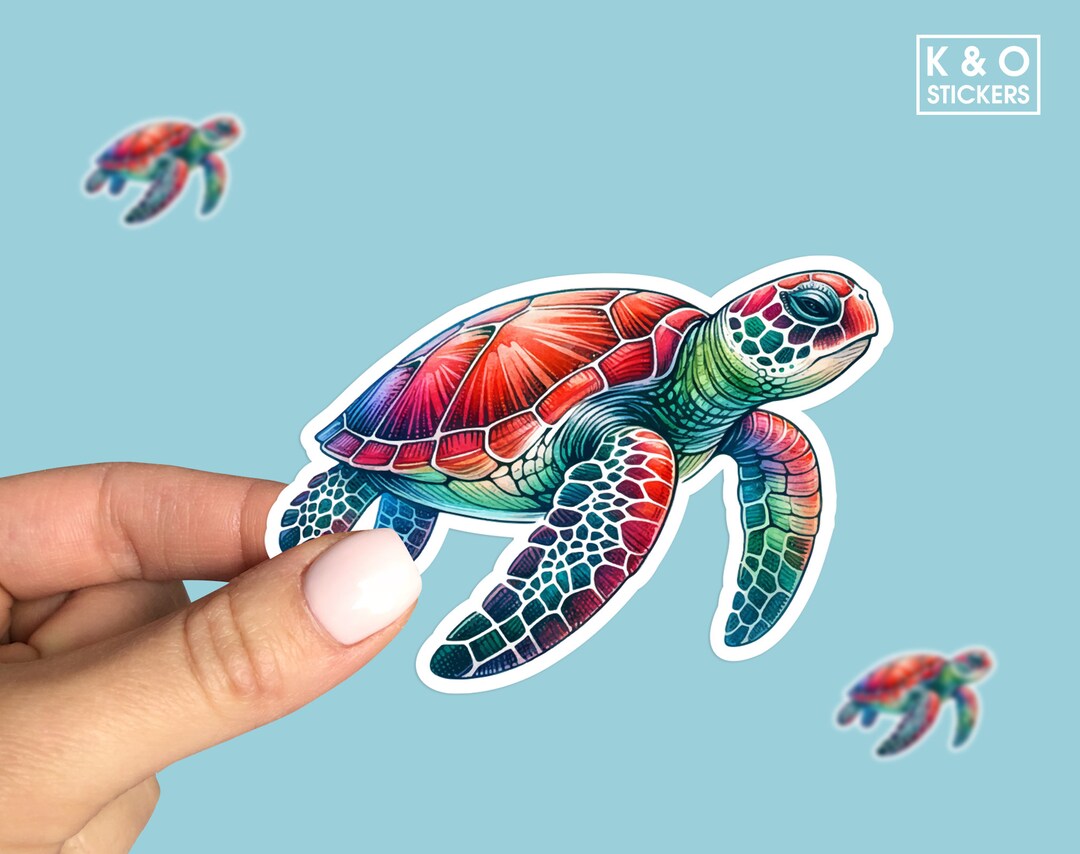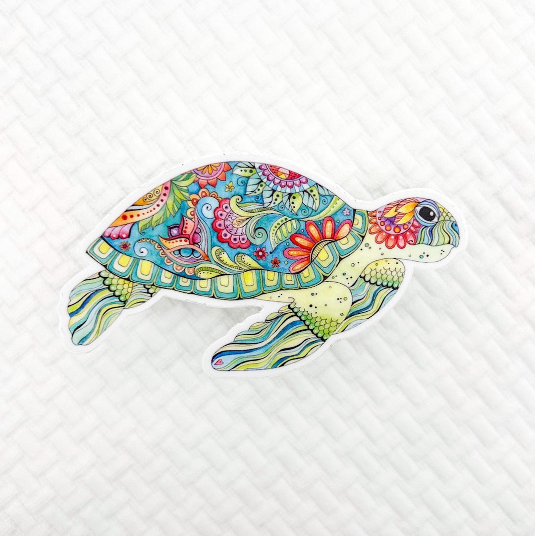 Colorful Sea Turtle Sticker - Waterproof Vinyl Decal for Laptop, Car ...