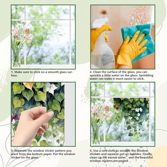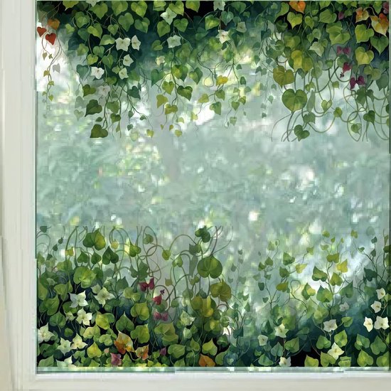 38 x 116 cm large window stickers with tendril flowers and green leaves ...