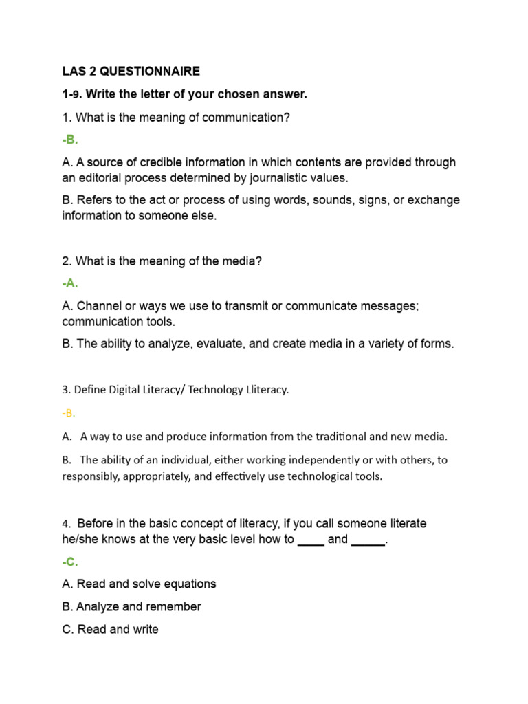 Mil Las 2 and 3 Questionnaire | PDF | Information | Media (Communication)