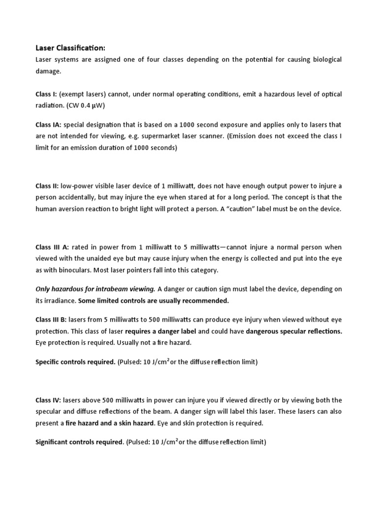 Laser Classification Table Laser Safety Facts, 40% OFF