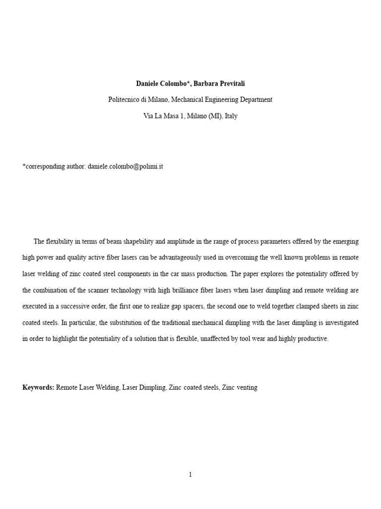 Laser Dimpling and Remote Welding of Zin | PDF | Welding | Construction
