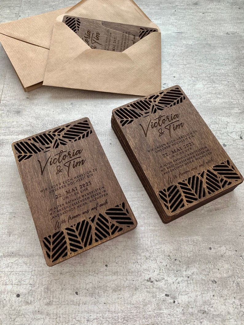 10x Wood Wedding Invitation Wooden Laser engraved Wedding | Etsy