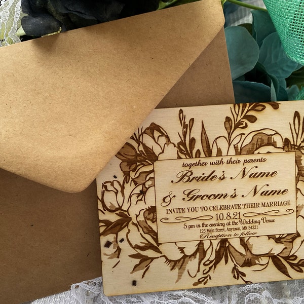 Custom Laser Engraved Wood Wedding Invitation - Etsy