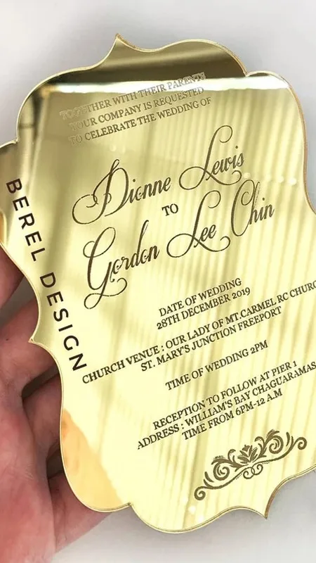 Royal Gold Laser Cut Artificial Crafts Invitation Acrylic Mirror ...