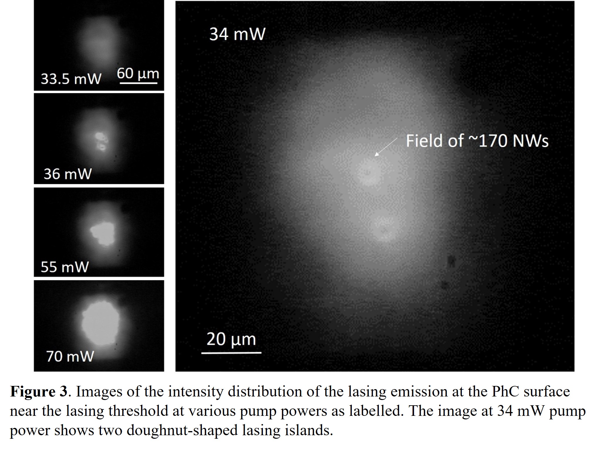 Single mode lasing from a short GaAs NW on iron film: (a) power ...