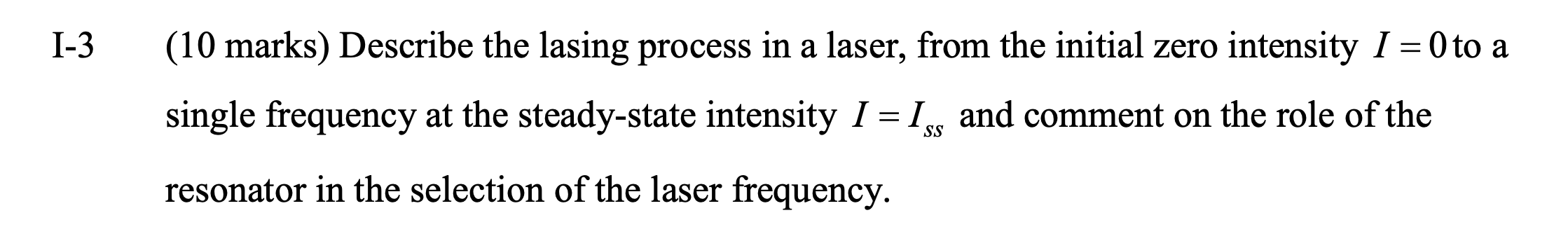 Solved I-3 (10 marks) Describe the lasing process in a | Chegg.com