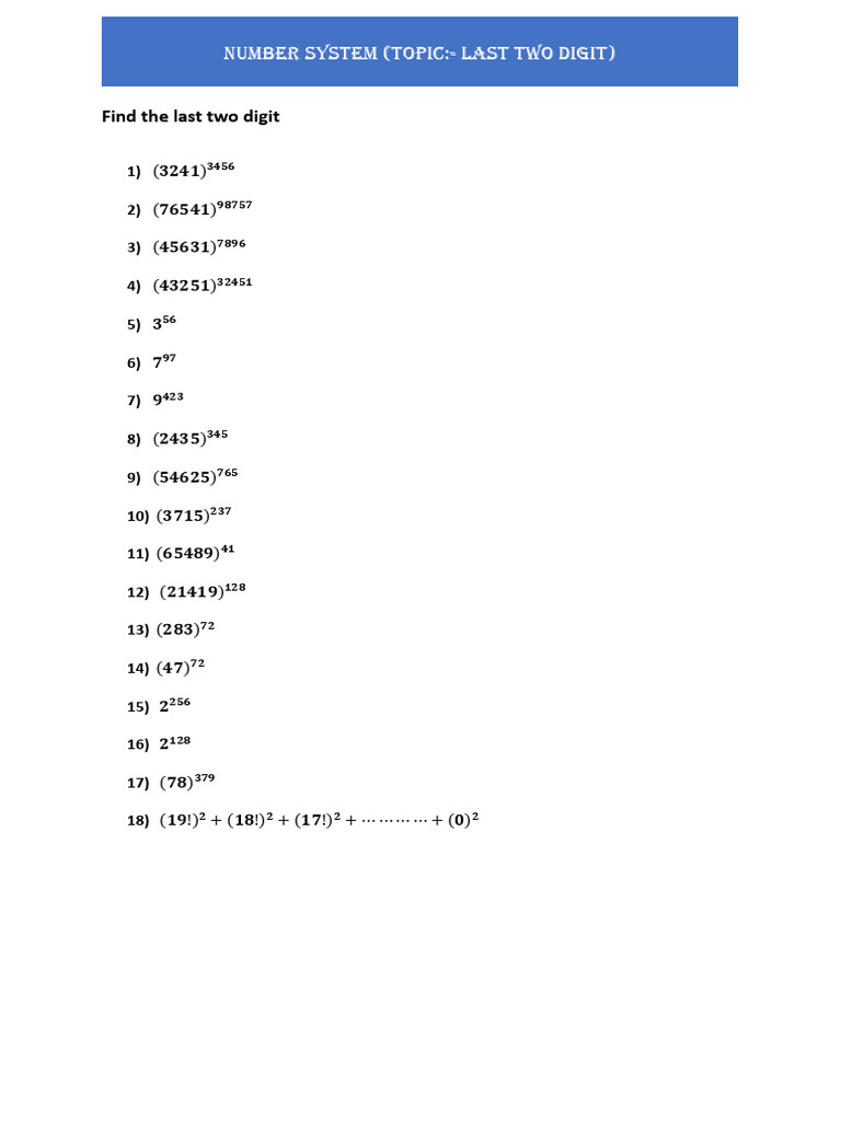 How To Find Last Two Digits | PDF | Teaching Mathematics | Mathematical ...