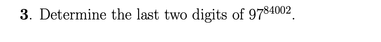 Solved 3. Determine the last two digits of 9784002. | Chegg.com
