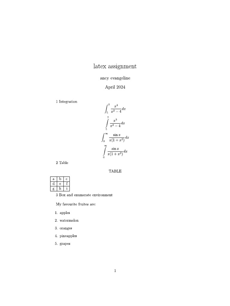 SOLVED: In class LaTeX assignment 1. Create a simple 5-column table ...
