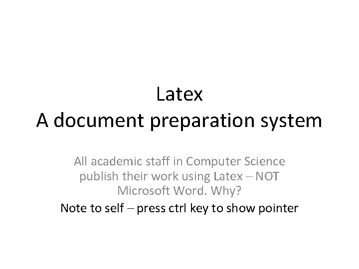 Latex A document preparation system All academic staff