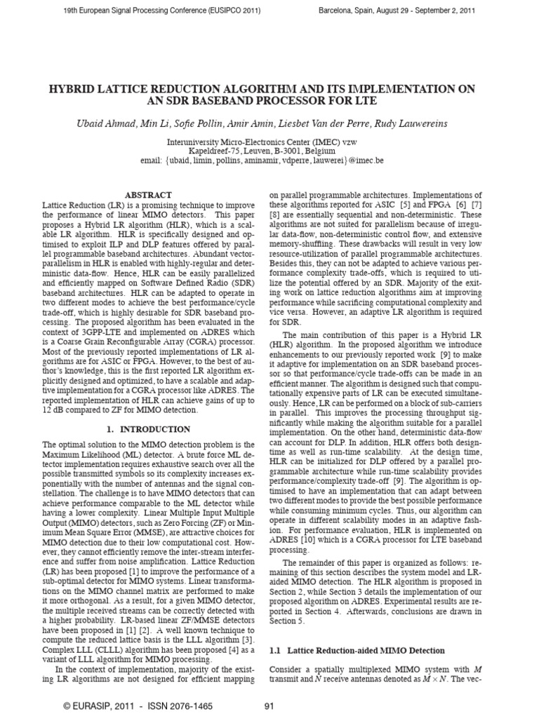 2011 Hybrid Lattice Reduction Algorithm and Its Implementation On An ...