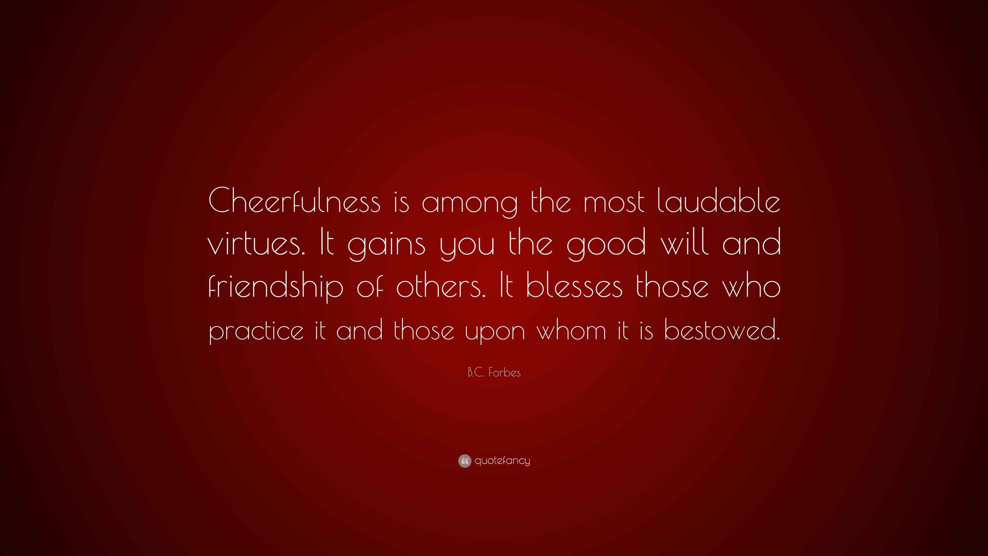 B.C. Forbes Quote: “Cheerfulness is among the most laudable virtues. It ...