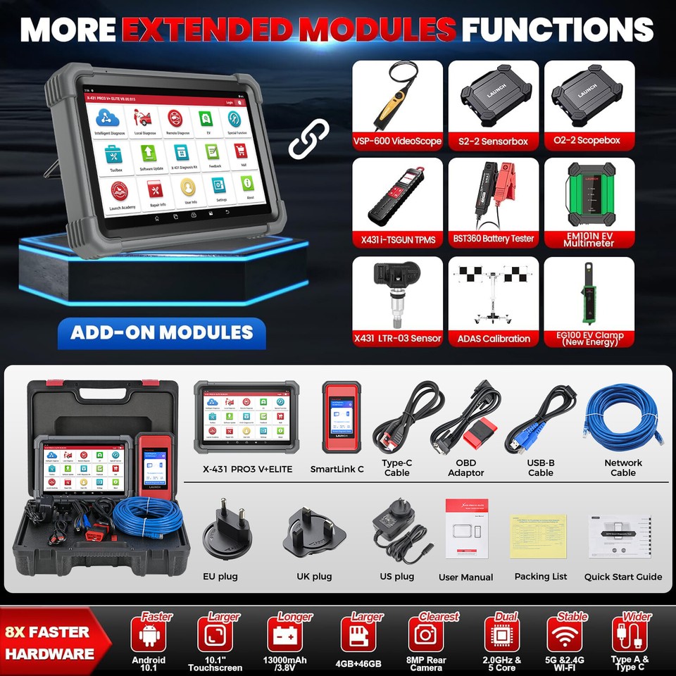 LAUNCH X431 PRO3S V+ELITE Pro5 Car Diagnostic Tool J2534 Programming ...