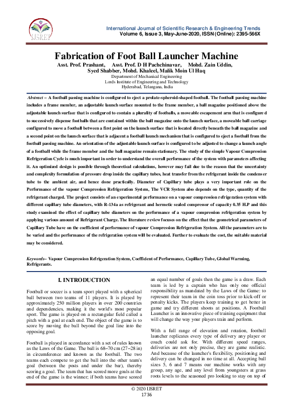 (PDF) Fabrication of Foot Ball Launcher Machine