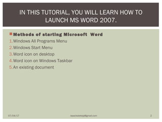 Launching and Quiting microsoft word 2007 | PPT