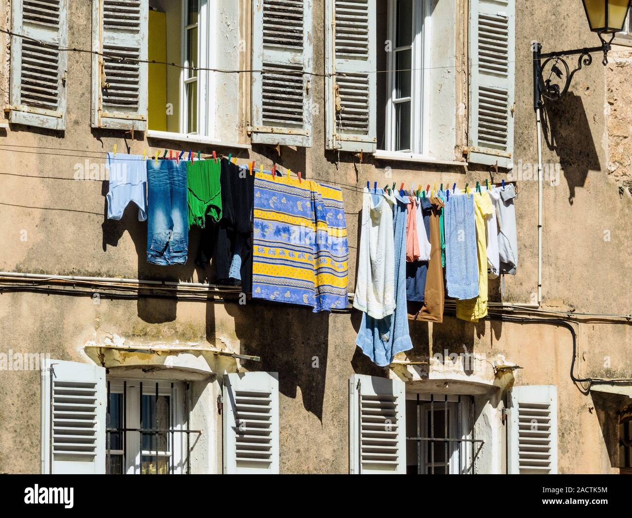 Laundry on lines outside Stock Photo - Alamy