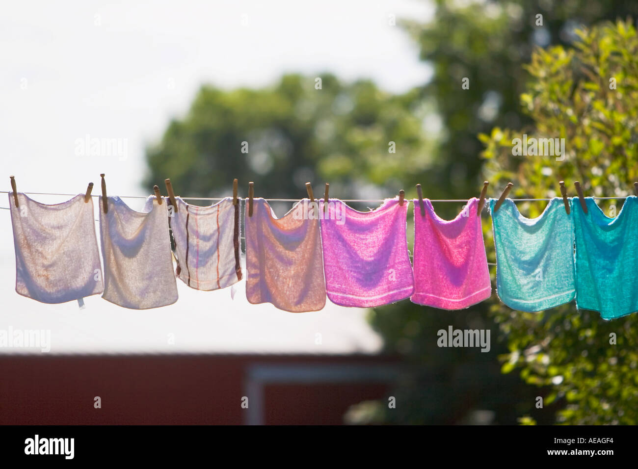 Laundry on clothes line Stock Photo - Alamy