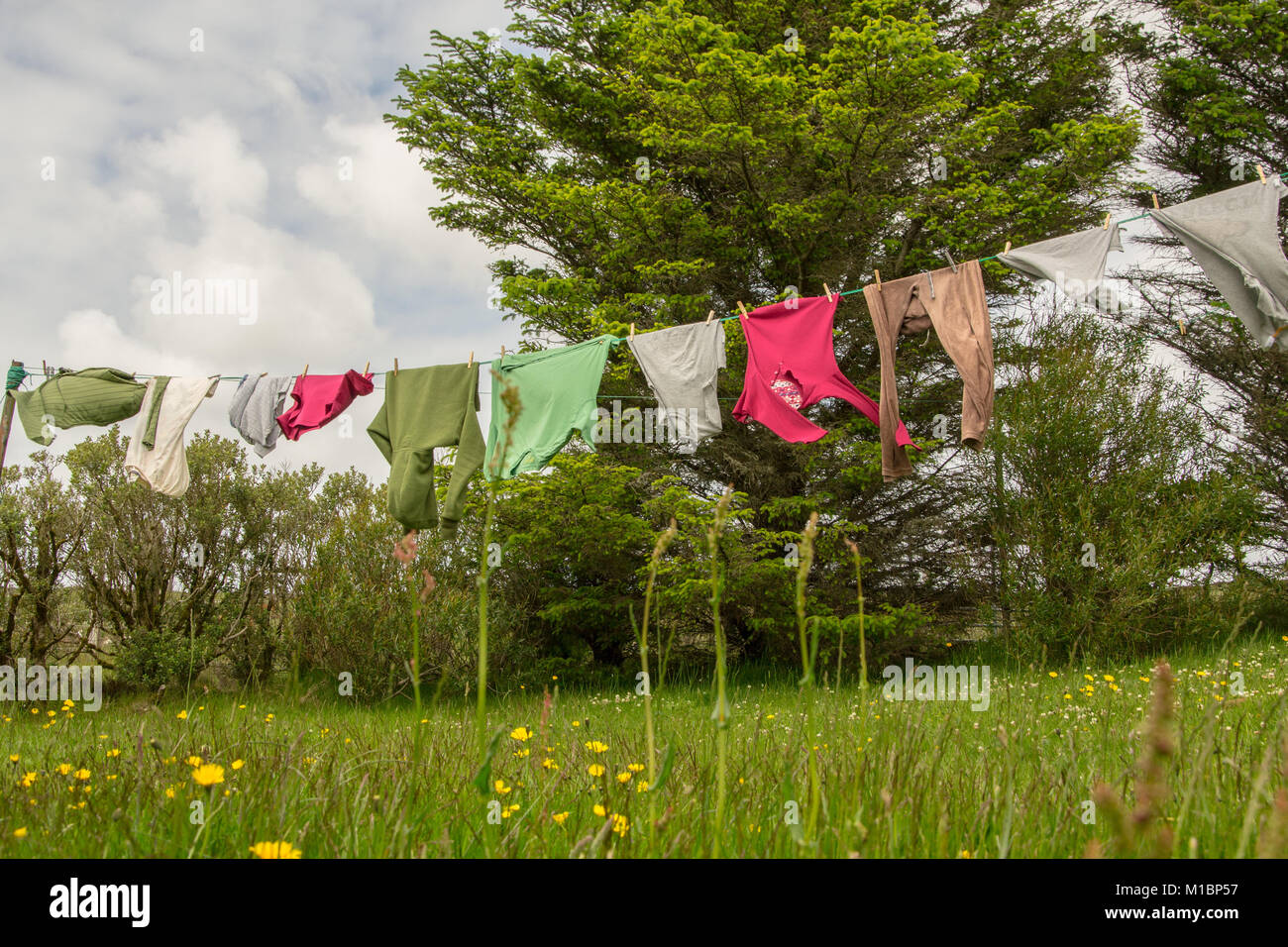 Laundry on washing line Stock Photo - Alamy