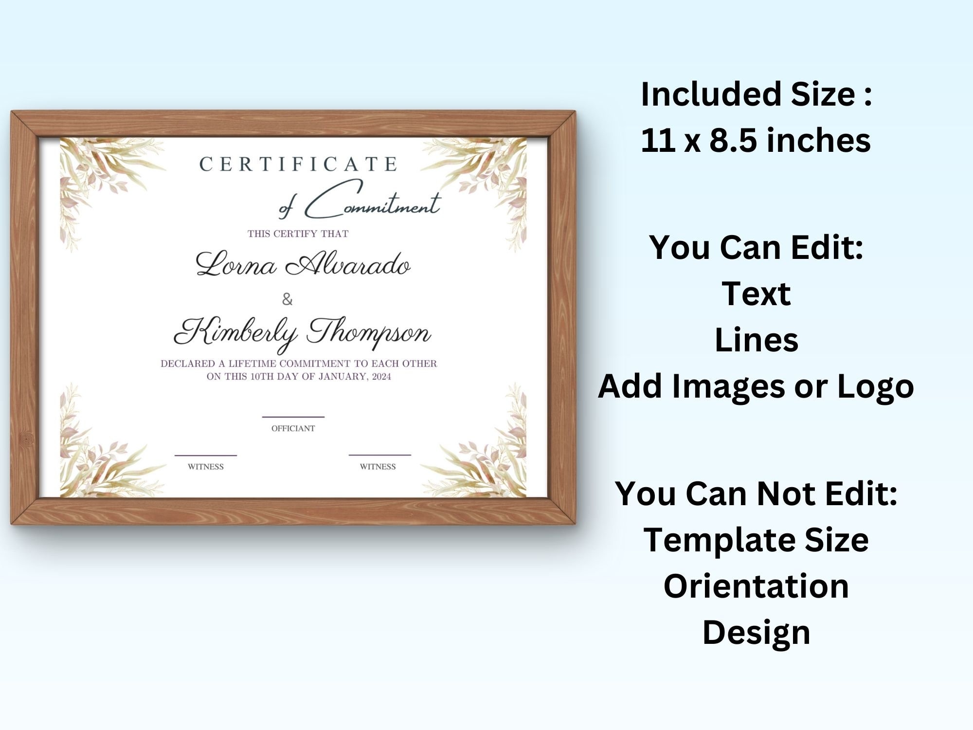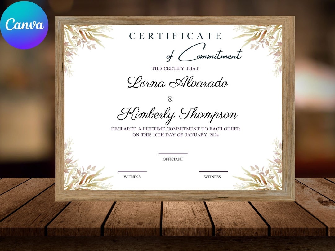 Printable Commitment Certificate Template: Editable Canva Design - Etsy