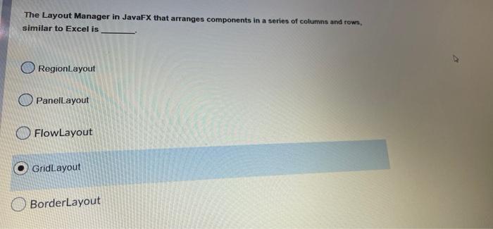 Solved The Layout Manager in JavaFX that arranges components | Chegg.com