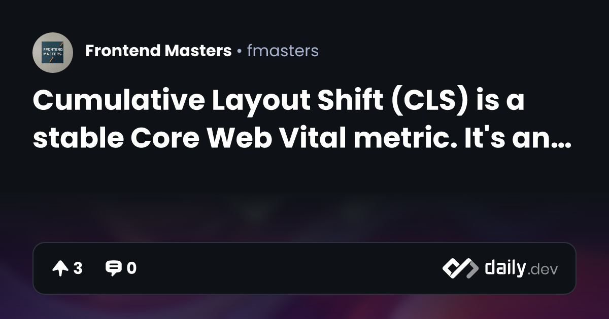Cumulative Layout Shift (CLS) is a stable Core Web Vital metric. It's ...