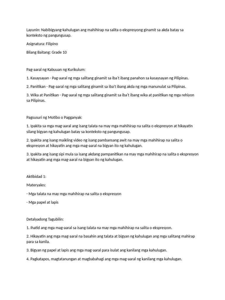 Lesson Plan: Layunin | PDF